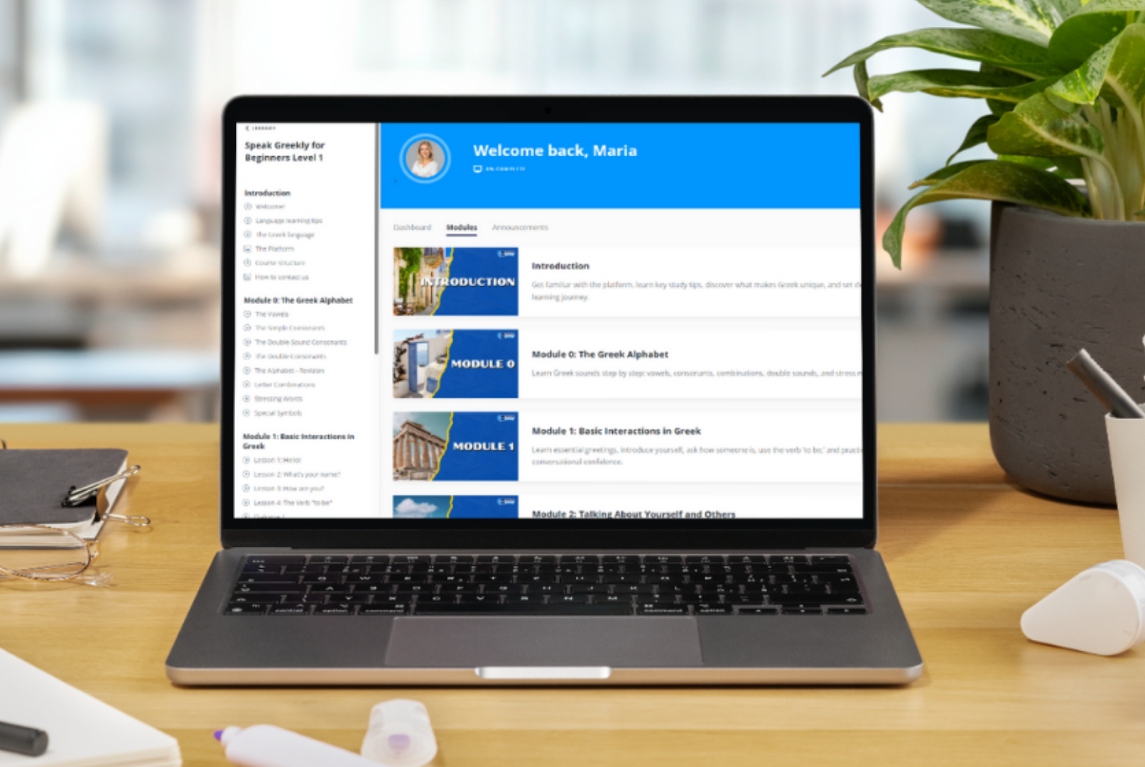 That insight led her to create the Speak Greekly curriculum and learning system: a modern, interactive approach where every lesson has a purpose, follows a clear progression, and focuses on helping students speak Greek from the very beginning.